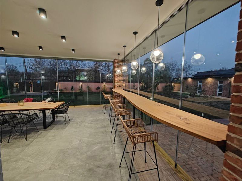 Безрамное остекление имеет широкий спектр применения: от небольшой мангальной зоны до ресторана с панорамным видом. - Функциональность