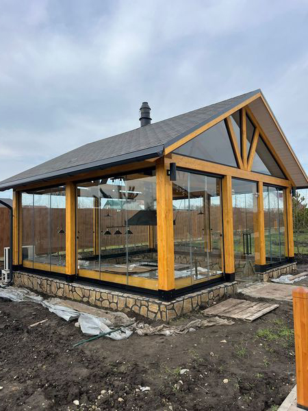 Безрамное остекление придаёт зданию современный и элегантный вид. Отсутствие видимых рам делает пространство более открытым и воздушным. - Защита помещения 365 дней в году