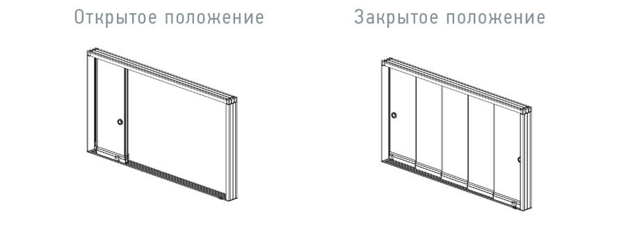 Каждая система открывания изготавливается по индивидуальным размерам, что обеспечивает лёгкое, плавное скольжение всех створок.